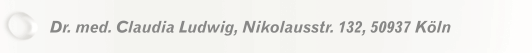 Haftung: Für den Fall, dass die auf der Homepage von Frau Dr. med. Claudia Ludwig veröffentlichten Informationen fehlerhaft sein sollten, übernimmt Frau Dr. Claudia Ludwig keinerlei Haftung. Für unaufgefordert eingesandte Manuskripte, Datenträger, Produkte und Fotos sowie Linkhinweise wird keine Haftung übernommen.